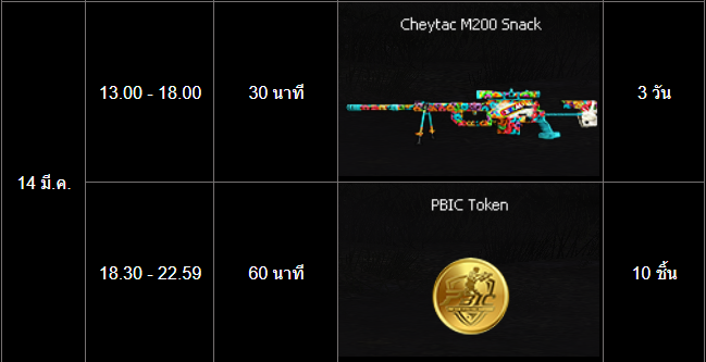 กิจกรรม บูส EXP และ Point เฉพาะโหมด Solo Match ระยะเวลากิจกรรม : 13 - 29 มีนาคม 2569 จัดหนักกับกิจกรรม Solo Match ประจำฤดูกาลนี้ เพียงผู้เล่นเข้าเล่นในโหมด Solo Match รับ EXP และ Point มากขึ้นสูงสุด 200% ![]() =========================== กิจกรรม ล็อกอินสุดสัปดาห์รับ Token PBIC2026 ระยะเวลากิจกรรม : 13 - 15 มีนาคม 2569 แจกหนักจัดเต็มเพื่อเทศกาล PBIC 2026! เพียงล็อกอินเข้าสู่เกมตามวันและเวลาที่กำหนด รับ Token เพิ่มไปเลย ![]() =========================== กิจกรรม สะสมเวลาล็อกอินสุดสัปดาห์ PBIC ระยะเวลากิจกรรม : 13 - 15 มีนาคม 2569 เพียงเข้าเกมและสะสมเวลาออนไลน์ให้ครบตามที่กำหนดเวลาในช่วง "ระยะเวลากิจกรรม" เพื่อรับรางวัลดังต่อไปนี้