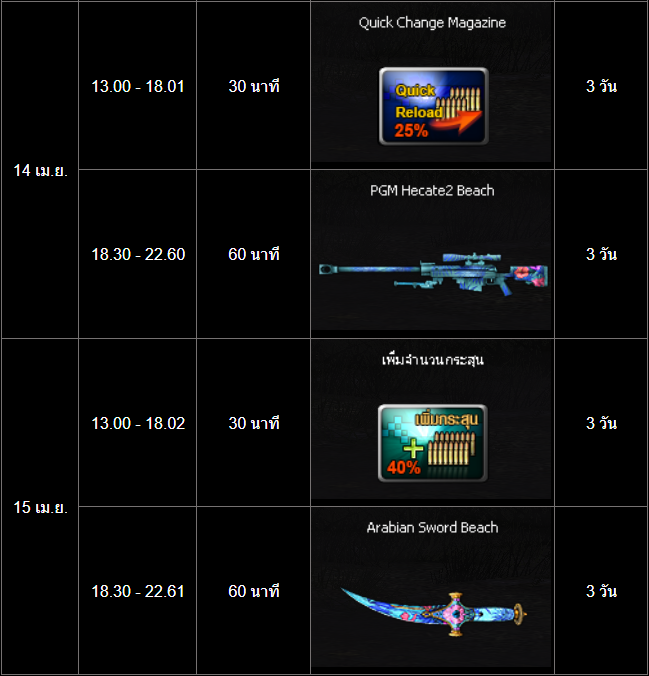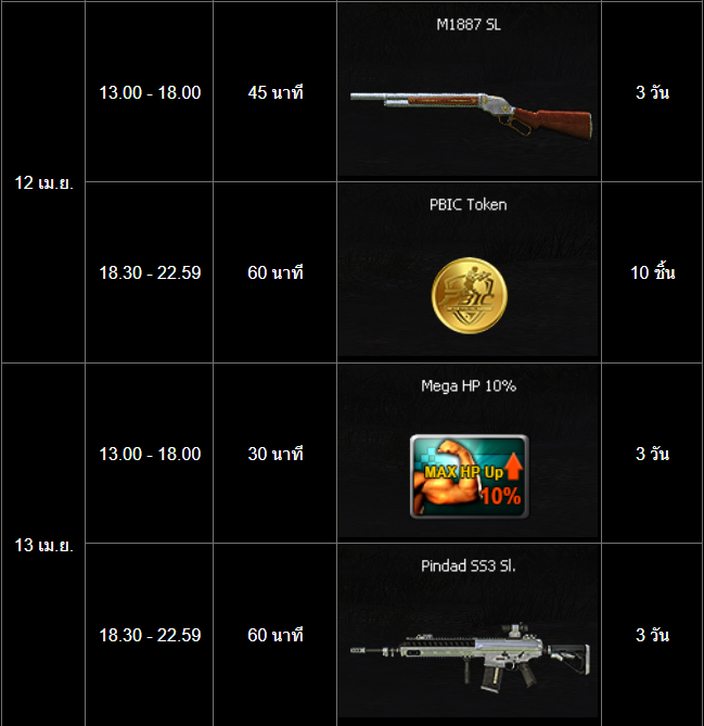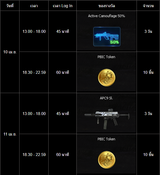 อัปเดต กิจกรรม สะสมเวลาล็อกอินสุดสัปดาห์ PBIC และสงกรานต์ (10 - 15 เมษายน)