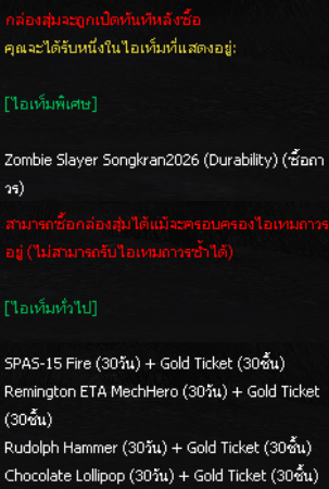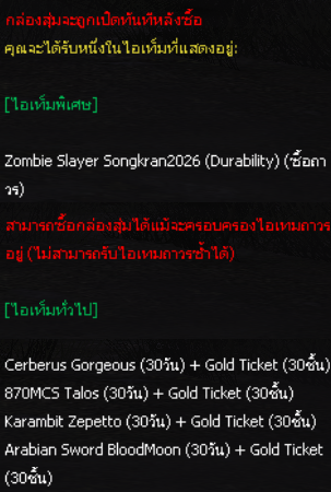 กล่องสุ่ม Zombie Slayer Songkran2026 ถาวร