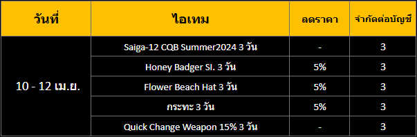 อัปเดต กิจกรรม Point Item Sale (10 - 12 เมษายน)