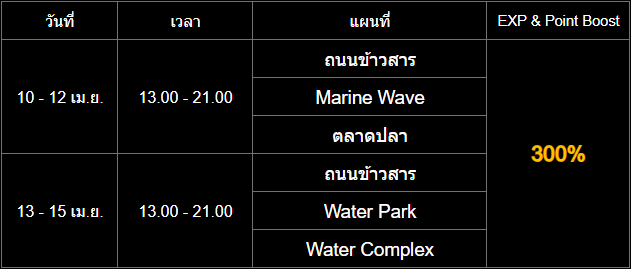 อัปเดต กิจกรรม บูส EXP และ Point ในแผนที่ธีมน้ำ (10 - 15 เมษายน)