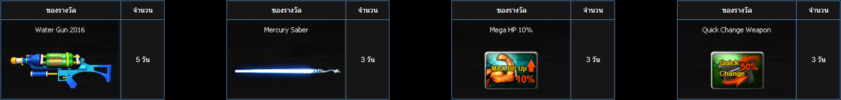 เพียงเข้าเกมและสะสมเวลาออนไลน์ให้ครบตามที่กำหนดเวลาในช่วง "ระยะเวลากิจกรรม" เพื่อรับรางวัลดังต่อไปนี้