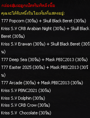 (ไอเทมจะทำการเปิดจำหน่ายจนถึงระยะเวลาก่อนปิดปรับปรุงเซิร์ฟเวอร์)