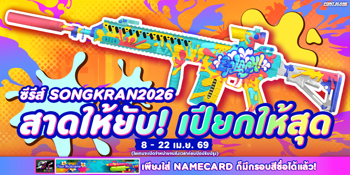 "พิเศษโบนัส 150% EXP & Point เมื่อใช้ "อาวุธหลัก" ของซีรีส์ Songkran2026"