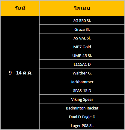 - รายชื่อไอเทมพิเศษทั้งหมดที่สามารถซื้อได้ด้วย Point ในวันที่ 9 - 14 ตุลาคม 2568