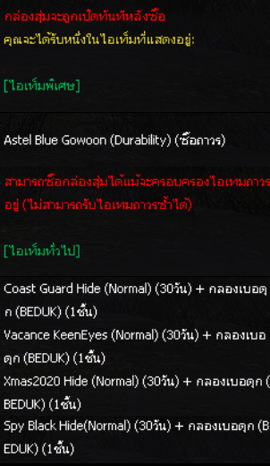 ** ผู้เล่นที่มี Astel Red Gowoon (Durability) อยู่แล้วในช่วงเวลาการขายกล่องสุ่ม
