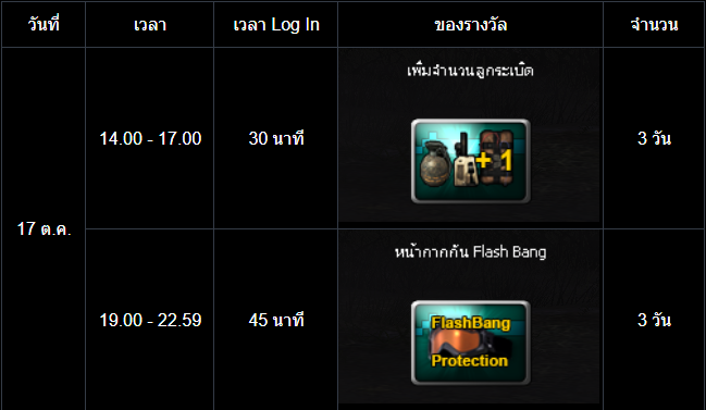 เพียงเข้าเกมและสะสมเวลาออนไลน์ให้ครบตามที่กำหนดเวลาในช่วง "ระยะเวลากิจกรรม" เพื่อรับรางวัลดังต่อไปนี้