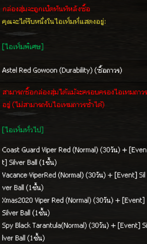 *โดยไอเทมจะถูกส่งเข้ากระเป๋าสัมภาระของผู้เล่นหลังจากจบกิจกรรมภายในระยะเวลา 7 วันทำการ*