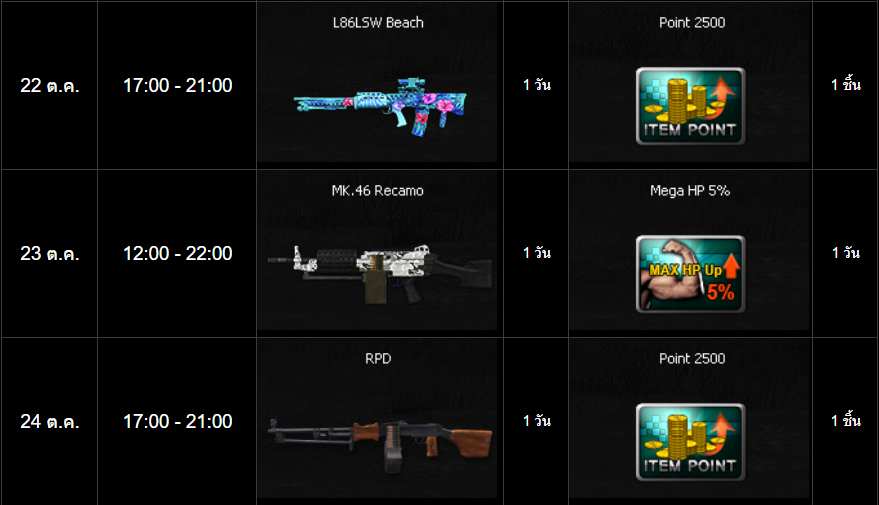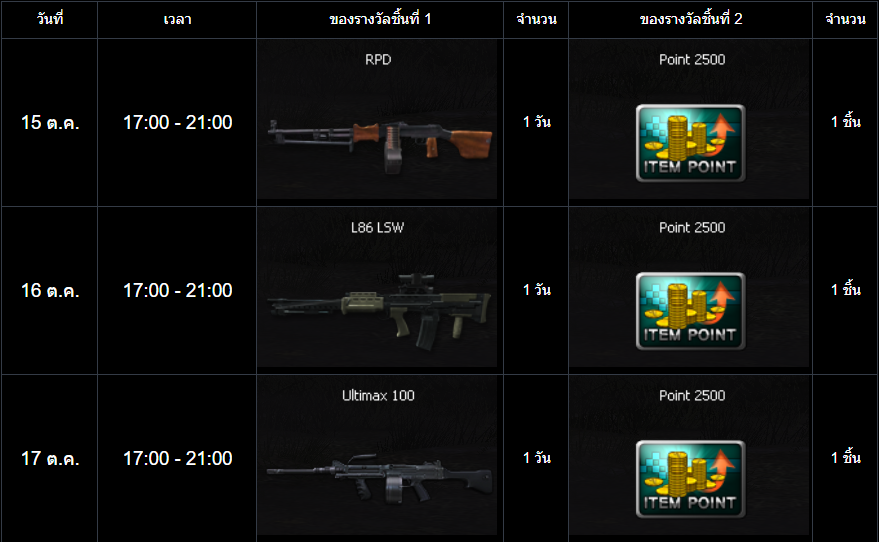 8. Machine Gun EXP & Point Boost (15 - 21 ตุลาคม 2568)