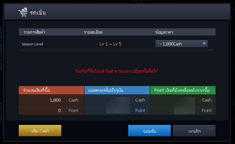 === การซื้อ Battle Pass Level เพิ่มขึ้น ==== ผู้เล่นสามารถดำเนินการซื้อเลเวลของ Battle Pass ด้วย PB Cash ผ่านหน้าต่าง Battle Pass จากภายในเกม ตามภาพประกอบดังนี้ ![]() รูปตัวอย่างการแสดงหน้าต่าง Battle Pass จากภายในเกม หลังจากที่ผู้เล่นดำเนินการกดซื้อเลเวลตามภาพด้านบนแล้ว กด "ยอมรับ" เพื่อซื้อเลเวล Battle Pass ด้วย PB Cash ตามภาพประกอบด้านล่าง (สามารถซื้อเลเวล Battle Pass ได้ครั้งละ 5 เลเวล) ![]()