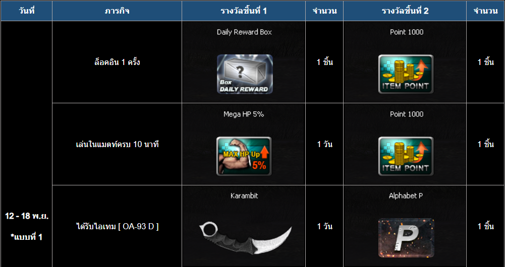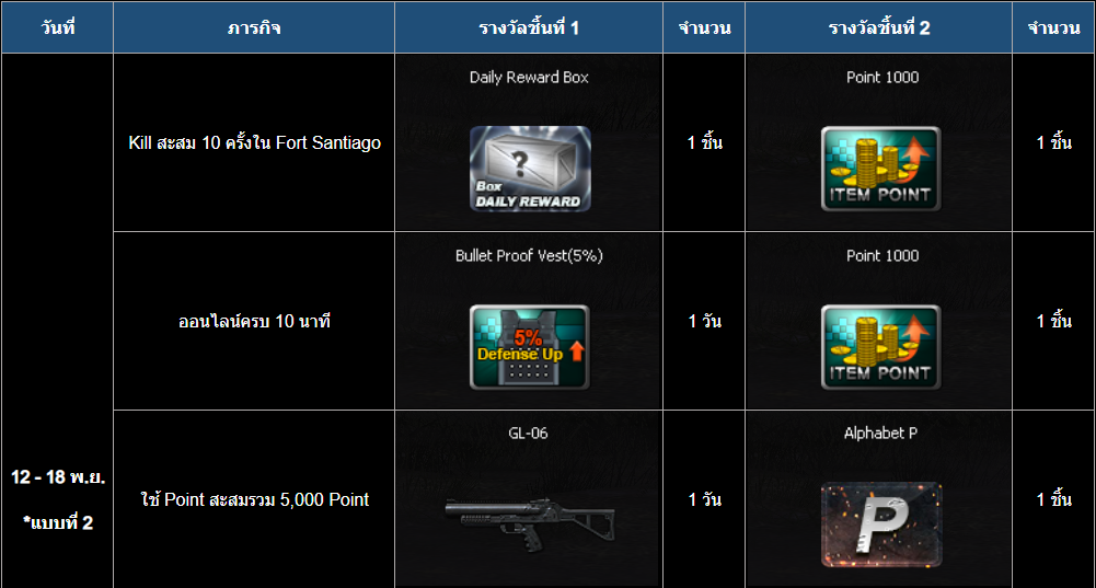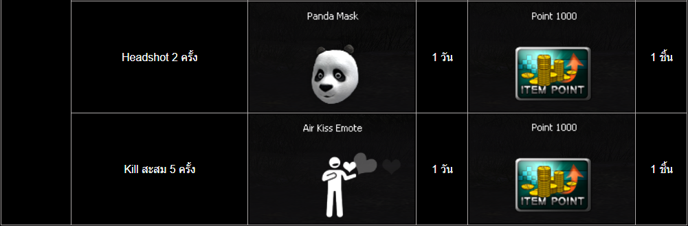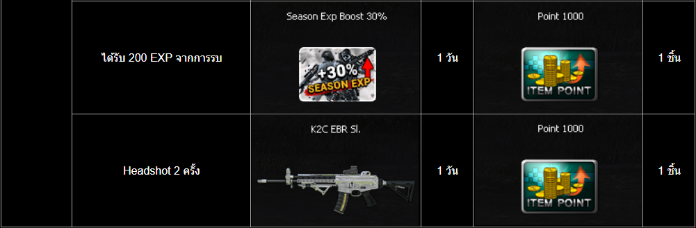 3. ผู้เล่นที่ได้ทำการเล่นอาวุธและไอเท็มที่ซื้อด้วย Point ในรายชื่อไอเท็มพิเศษที่เปิดขายข้างต้น