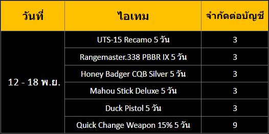 8. การบูส Point พิเศษสำหรับอาวุธกิจกรรม (12 - 18 พฤศจิกายน 2568)