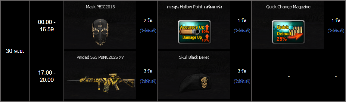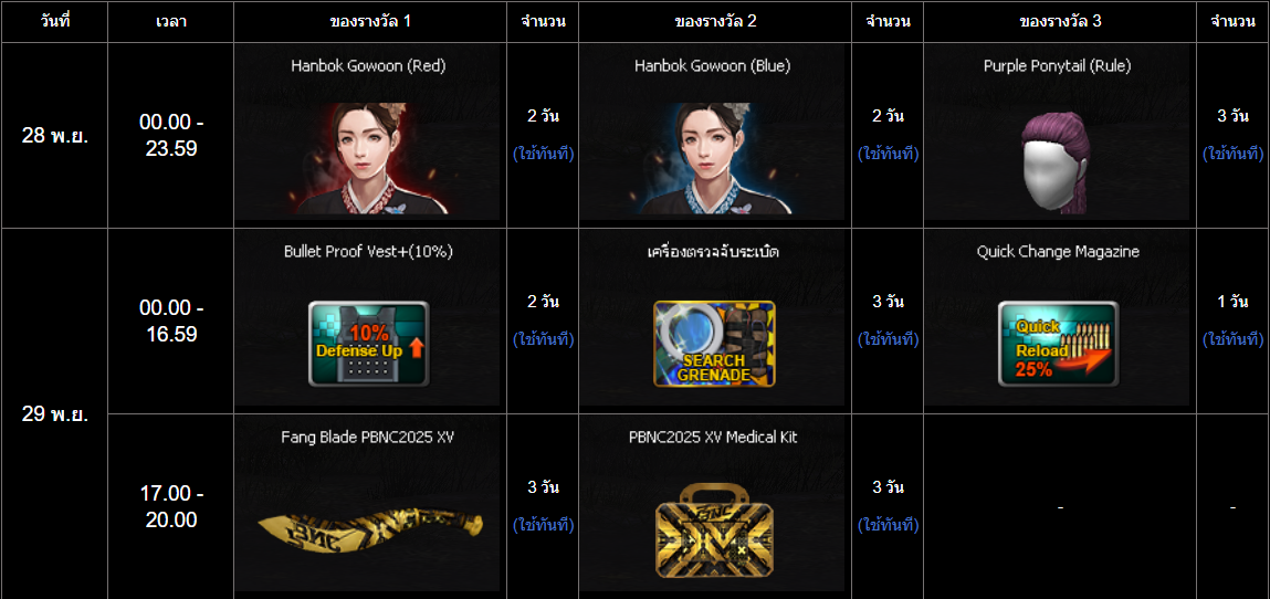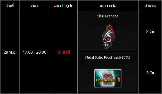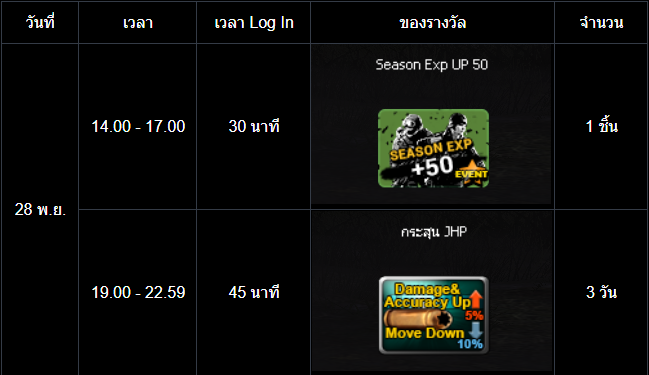 ของรางวัลพิเศษเพิ่มเติม เมื่อผุ้เล่นสะสมเวลาล็อกอินในเกม Point Blank ในวันและเวลาที่กำหนด เตรียมรับของรางวัลสุดพิเศษ