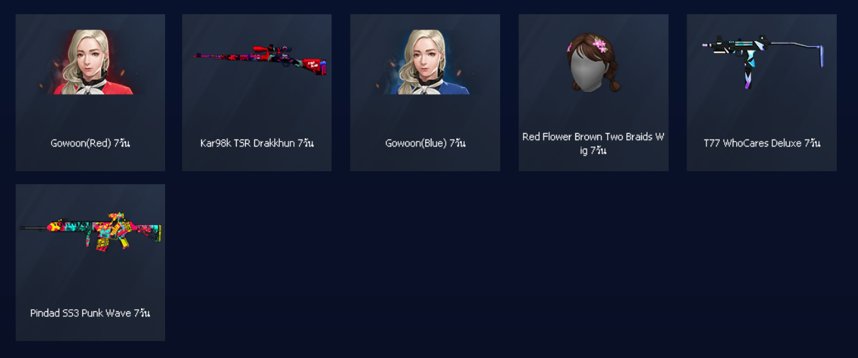 * ไอเทมทุกชิ้นจากกิจกรรมจะมีอายุการใช้งาน 1 วัน*