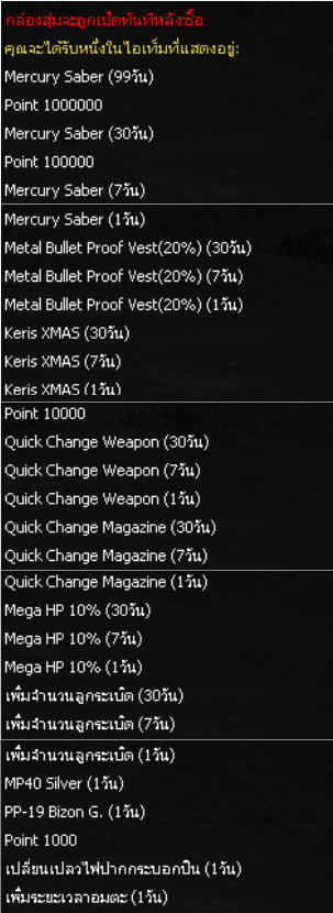 (ไอเทมจะทำการเปิดจำหน่ายจนถึงระยะเวลาก่อนปิดปรับปรุงเซิร์ฟเวอร์)