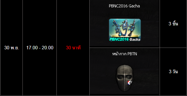 กิจกรรม สะสมเวลาล็อกอินพิเศษการแข่งขัน PBNC