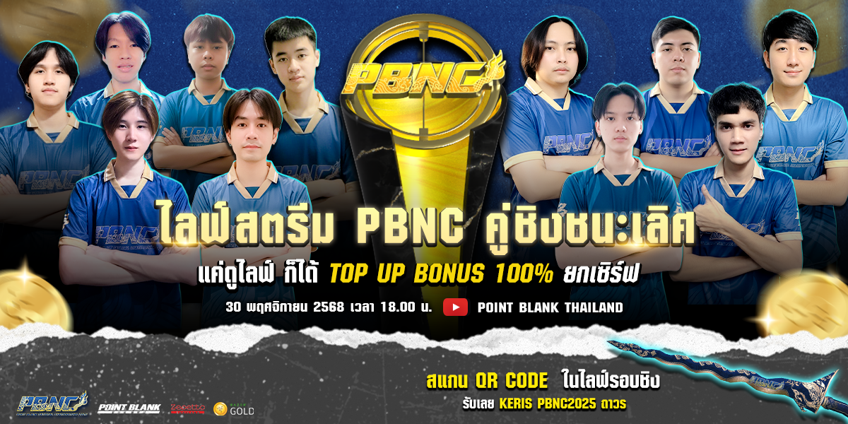 ในรายการ Point Blank National Championship 2025 (PBNC2025) ในปีนี้ วันที่ 30 พฤศจิกายน เวลา 18.00 น.