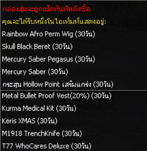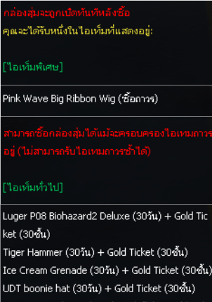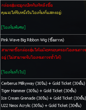 (ไอเทมจะทำการเปิดจำหน่ายจนถึงระยะเวลาก่อนปิดปรับปรุงเซิร์ฟเวอร์)