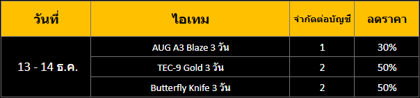 1. * หลังจากหมดโปรโมชั่น ไอเทมเหล่านี้จะถูกนำออกจากร้านค้า
