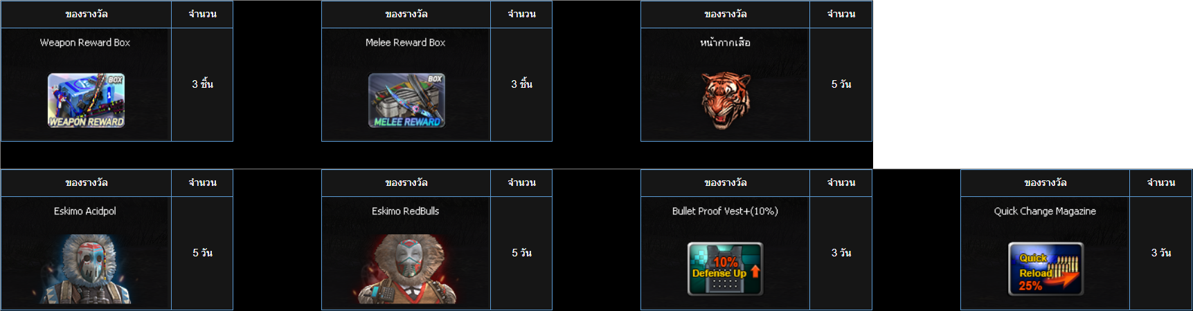 และจะส่งมอบรางวัลให้คลังสัมภาระผู้เล่นภายใน 7 วันทำการ