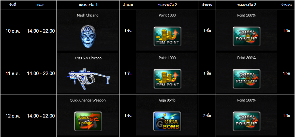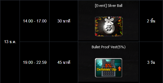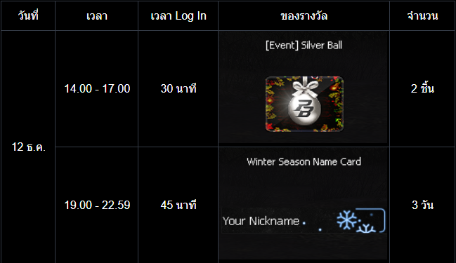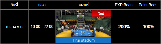 - รับ บูส Point 200% ทุกวันผ่านกิจกรรม "ล็อกอินรับไอเทมวันหยุดพิเศษ!" (10 - 14 ธันวาคม)