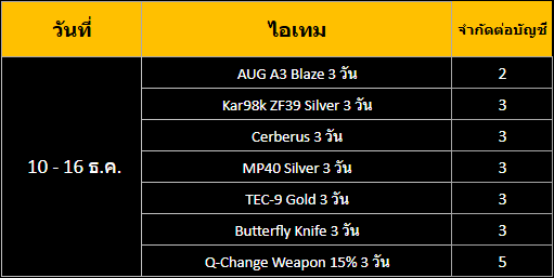 5. รายชื่อไอเทมพิเศษทั้งหมดที่สามารถซื้อได้ด้วย Point ในวันที่ 10 - 16 ธันวาคม 2568