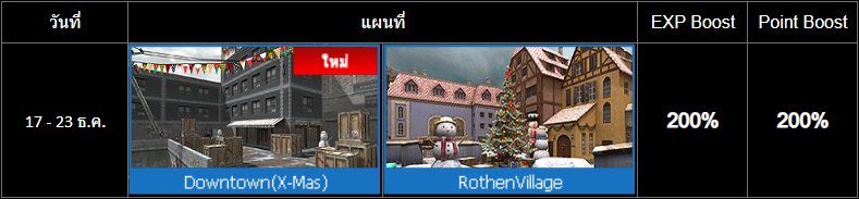 พิเศษ เมื่อเล่นแผนที่ธีมฤดูหนาวตามกำหนดการดังต่อไปนี้รับ บูส EXP และ Point เพิ่มเติมสูงสุดถึง 200% ไปเลย