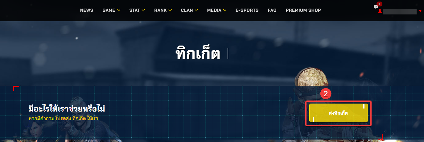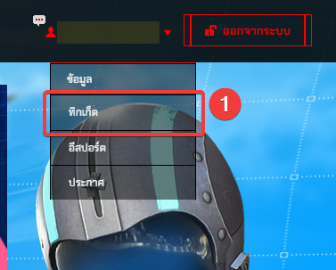 และกดที่ชื่อผู้เล่นมุมขวาบนและเลือกหัวข้อ "ทิกเก็ต"