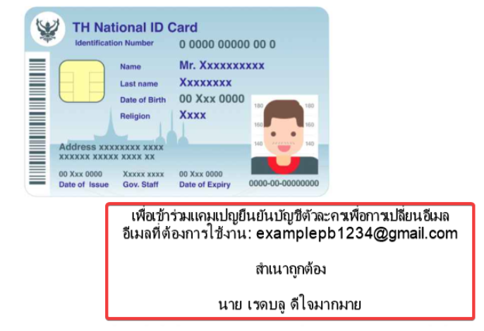 เขียนกำกับ "เพื่อเข้าร่วมแคมเปญยืนยันบัญชีตัวละครเพื่อการเปลี่ยนอีเมล"