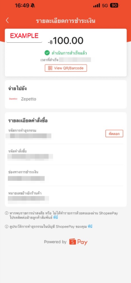 (ภาพตัวอย่างหลักฐานการเติมเงิน)