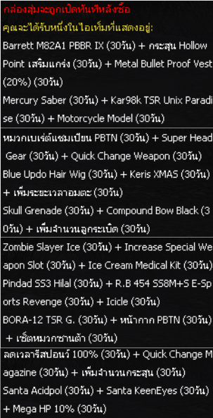 ไอเทมในกล่อง Blue (ซ้าย) / Red (ขวา)