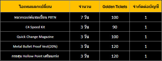 3.ไอเทมถาวรสามารถแลกเข้าไอดีที่มี Gold Ticket เท่านั้น ไม่สามารถโอนย้ายไปยังไอดีอื่นได้
