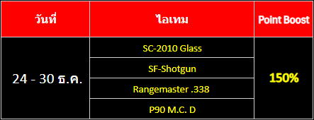 1. รวมถึงกิจกรรมบูส Point ไอเทมพิเศษที่สามารถซื้อได้ด้วย Point ในวันที่ 24 - 30 ธันวาคม 2568