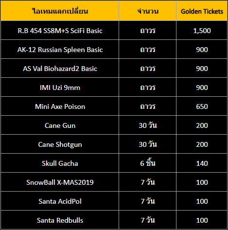 (Gold Ticket รับได้จากกล่องสุ่มปืนถาวร และ กิจกรรมภายในเกม)