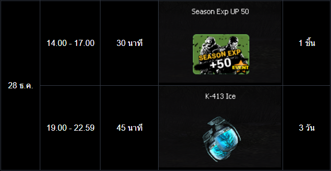 * ไอเทมทุกชิ้นจากกิจกรรมจะมีอายุการใช้งาน 1 วัน *