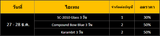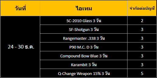 อัปเดต การขาย อาวุธถาวร เก่าแต่ยังเก๋า! (24 ธันวาคม 2568 - 6 มกราคม 2569)