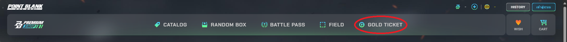 จะเข้ามาหน้า WEB SHOP และให้ทำการกดเมนู GOLD TICKET ทางด้านขวา