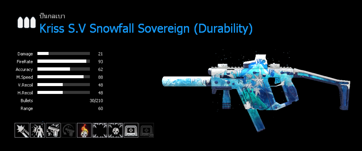 อาวุธหลัก : Kriss S.V Snowfall Sovereign (ถาวร) เงื่อนไขการครอบครอง: ของรางวัลระดับ Premium ที่ Season Pass เลเวล 45