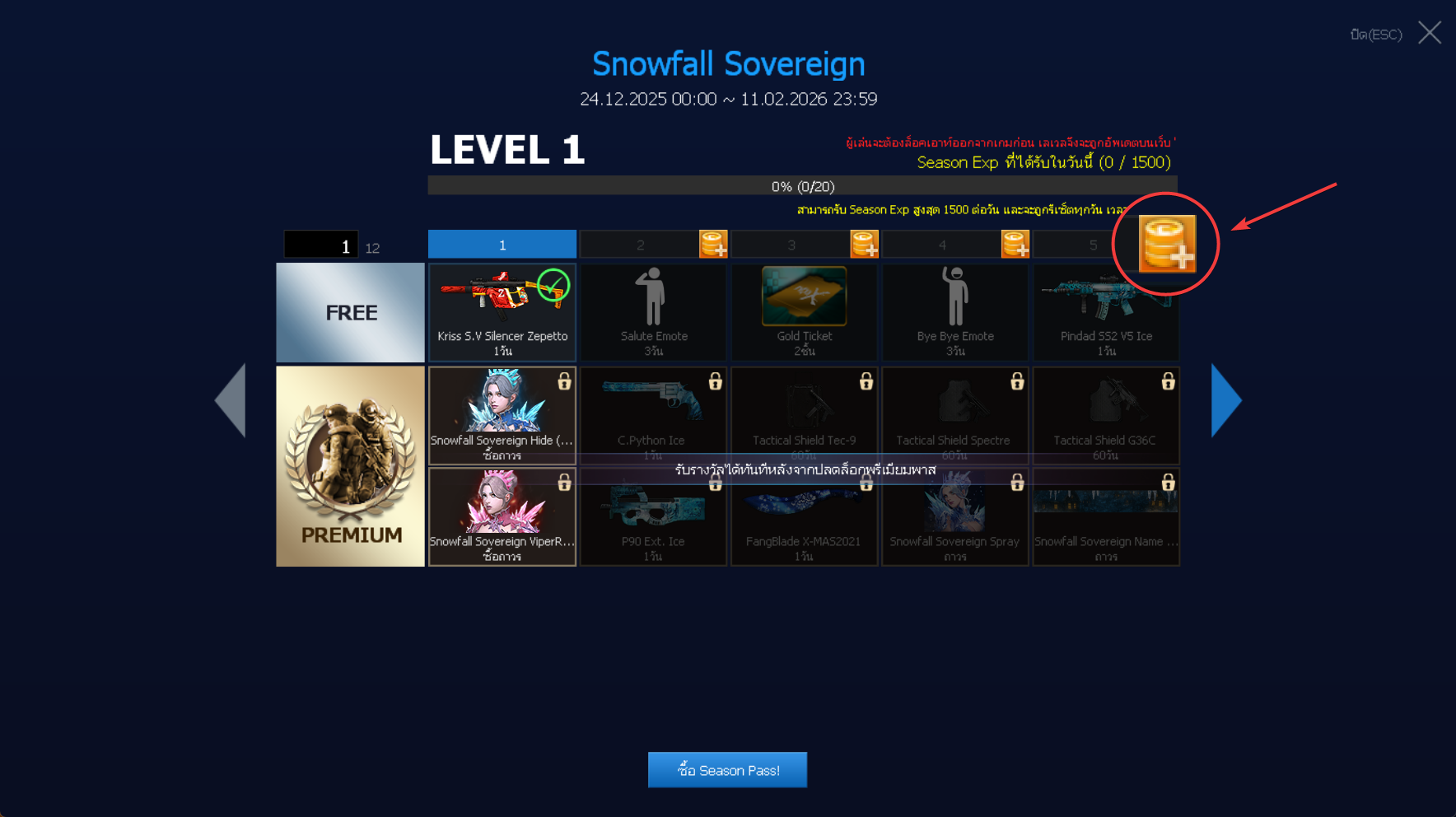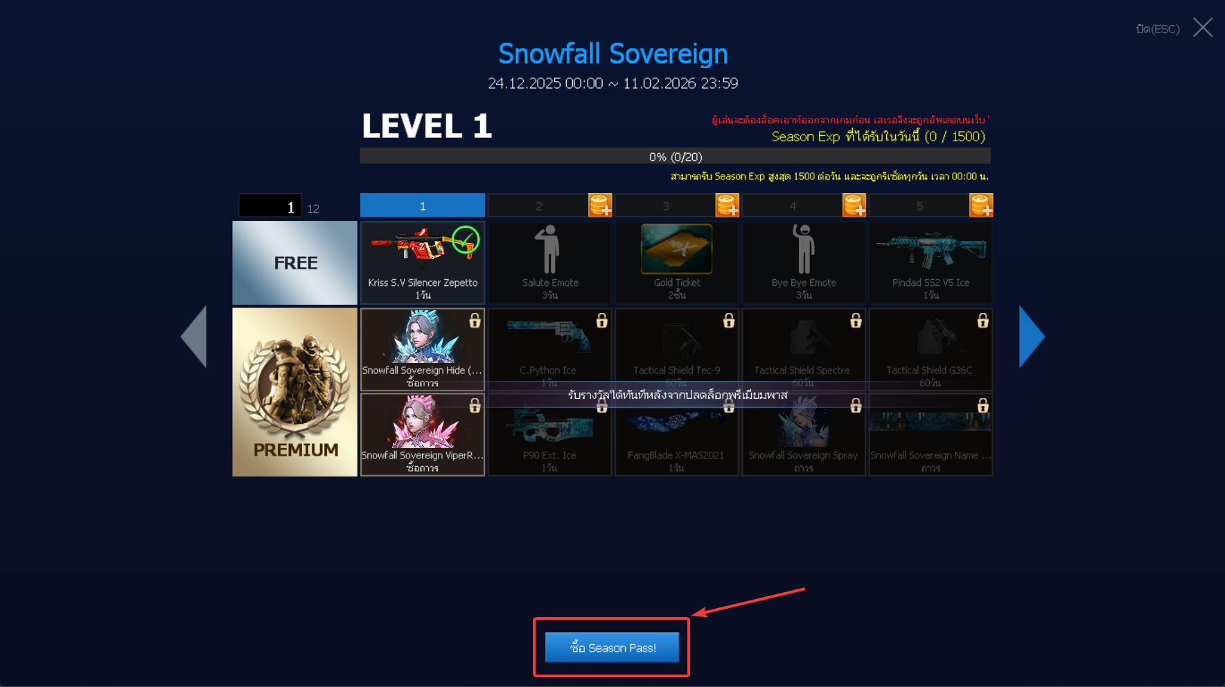 เปิดร้านค้า Premium Pass: Snowfall Sovereign