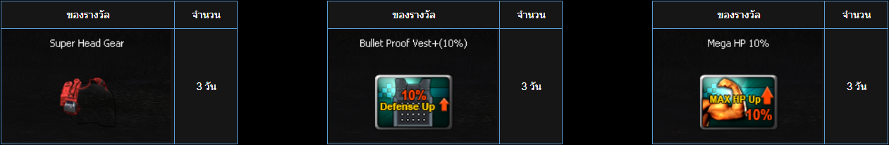 เพียงเข้าเกมและสะสมเวลาออนไลน์ให้ครบตามที่กำหนดเวลาในช่วง "ระยะเวลากิจกรรม" เพื่อรับรางวัลดังต่อไปนี้