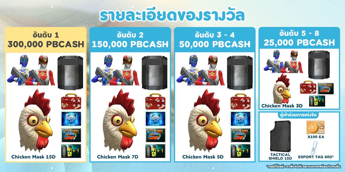 1. การตั้งชื่อในการแข่งขัน โปรดใช้คำที่เหมาะสม เช่น เกี่ยวกับการเมือง,พระมหากษัตริย์ , การตั้งชื่อในการแข่งขันไม่เหมาะสมทีมงานสามารถตัดสิทธิ์ในการแข่งขันหรือขึ้นอยู่กับทีมงานพิจาราณา 2. ผู้เข้าร่วมแข่งขันต้องไม่มีประวัติการใช้โปรแกรมช่วยเล่น หากตรวจสอบพบจะทำการแบนไอดีถาวร และตัดสิทธิ์การลงแข่งขันทุกรายการ 3. ของรางวัลหรือเงินรางวัลจะได้รับหลังจากผู้เข้าแข่งขันจัดส่งเอกสารครบภายใน 30-60 วันทำการ (จันทร์ - ศุกร์ ไม่รวมวันหยุดเสาร์อาทิตย์และวันหยุดนักขัตฤกษ์) 4. ในการรับของรางวัลเป็นไอเทมในเกมต้องเป็นไอดีเดียวกับทีสมัครการแข่งขันเท่านั้น 5. ขอให้ผู้เข้าแข่งขันทุกท่านปฏิบัติตามกฎกติกาการแข่งขันอย่างเคร่งครัด และมีน้ำใจนักกีฬา 6. ผู้เข้าแข่งขันต้องนำบัตรประชาชนทีตรงกับการสมัครการแข่งขันมาเเสดงเพื่อให้ทีมงานตรวจสอบก่อนการแข่งขัน 7. หากทีมงานตรวจสอบพบว่าใช้โปรแกรมช่วยเล่นในการแข่งขัน หรือช่วงระยะเวลาที่มีการแข่งขัน ทีมงานจะทำการแบนไอดีถาวรและแบนไม่ให้ลงแข่งขันทุกรายการ 1 ปี 8. การส่งรูปให้กับทีมงานควรเป็นรูปถ่ายทีมีความคมชัด ไฟล์ JPG หรือ PNG เท่านั้น และผู้เข้าแข่งต้องใส่เสื้อทีม หรือเสื้อสีดำหรือขาวล้วนและทีมงานสงวนสิทธิ์ ในการนำรูปของผู้เข้าแข่งขันไปให้ในการโปรโมทหรือใช้งานในกรณีอื่น ๆ ได้ตามความเหมาะสม ตลอดช่วงระยะเวลาการแข่งขัน 9. ห้ามผู้เข้าแข่งขันสูบบุหรี่หรือเครื่องดื่มของมึนเมาออกกล้องขนาดทำการแข่งขันถ่ายทอดสด 10. ในรอบถ่ายทอดสดการแข่งขันผู้เข้าแข่งขันต้องเตรียมบัตรประชาชนไว้สำหรับให้ทีมงานตรวจสอบก่อนทำการแข่งขัน เพื่อให้ทีมงานเช๊คชื่อให้ตรงกับทีมทีสมัครการแข่งขันดังกล่าวทุกครั้ง (หากทีมใดที่ไม่แสดงบัตรประชาชนให้ทีมงานตรวจสอบหรือชื่อไม่ตรงกับที่สมัคร ถือว่าทีมนั้นไม่พร้อมที่จะทำการแข่งขัน ทีมงานจะปรับแพ้ทันทีและตัดสิทธิ์ของรางวัลทุกประการ) 11. ผู้เข้าแข่งขันต้องทำตามมาตรการของทีมงานโดยการให้ผู้แข่งขันเปิดกล้องให้เห็นทั้งหน้าตัวเองและหน้าจอในขนาดแข่งขันทุกครั้งทีทำการแข่งขัน ห้ามผู้เข้าแข่งขันปิดไฟในขนาดที่ทำการแข่งขันเด็ดขาด ต้องเปิดไฟเพื่อให้ทีมงานเห็นหน้าของผู้เล่นได้อย่างชัดเจนตลอดการแข่งขัน 12. ของรางวัลหรือกฎต่างๆสามารถเปลียนแปลงได้โดยไม่ต้องแจ้งให้ทราบล่วงหน้า 13. ในกรณีที่สงสัยทีมฝั่งตรงข้ามสามารถเรียกทีมงานเข้าไปเฝ้าใน Discord เพื่อให้แชร์หน้าจอให้ทีมงานดูในระหว่างการแข่งขัน ในการจะให้ทีมงานเฝ้าต้องแจ้งทีมงานล่วงหน้าอย่างน้อย 1 วันก่อน