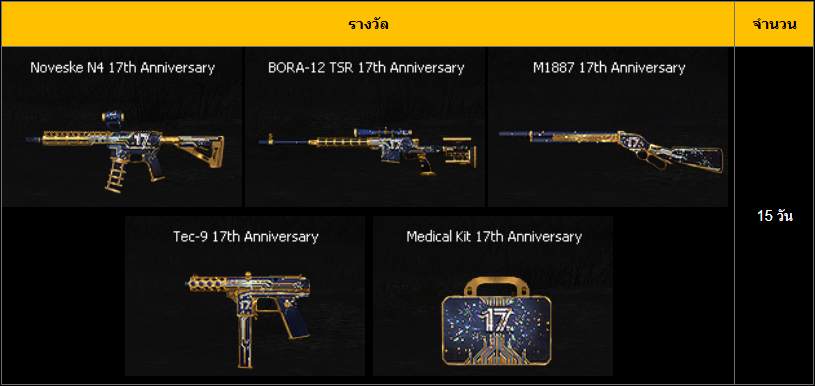 รายละเอียดรางวัลใหญ่พิเศษสำหรับกิจกรรม 17 ปี
