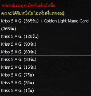 ***หมายเหตุ : ไอเทมกล่องสุ่มนี้จะไม่มีการการันตีถาวร***