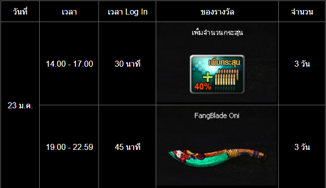 อัปเดต กิจกรรม สะสมเวลาล็อกอินสุดสัปดาห์ (23 - 25 มกราคม)