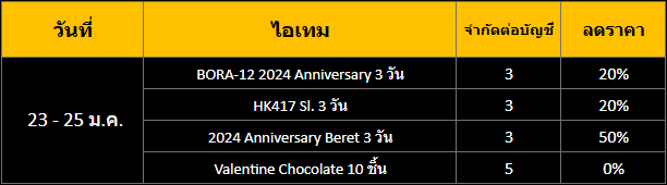 6. * หลังจากหมดโปรโมชั่น ไอเทมเหล่านี้จะถูกนำออกจากร้านค้า