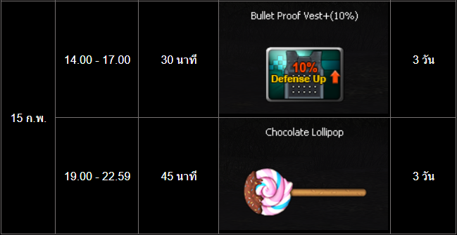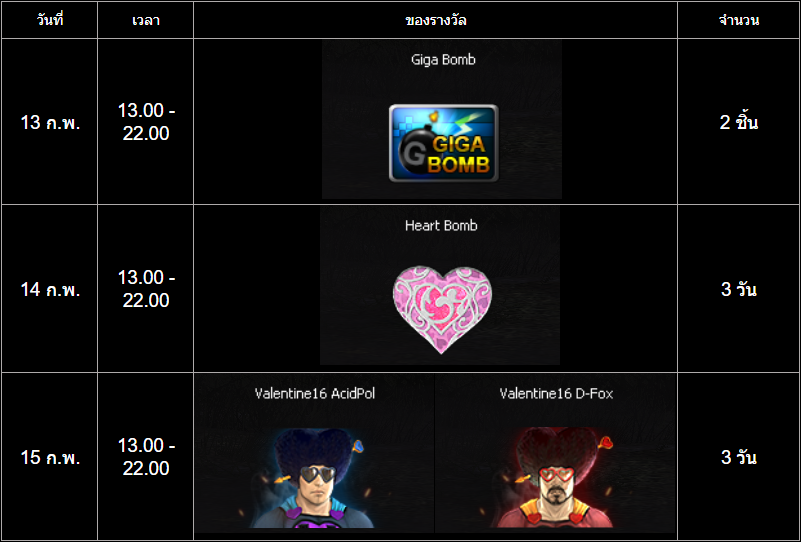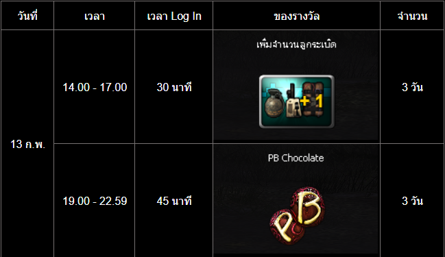 =========================== สะสมเวลาล็อกอินต้อนรับวาเลนไทน์ ช่วงเวลากิจกรรม : 13 - 15 กุมภาพันธ์ 2569 เพียงเข้าเกมและสะสมเวลาออนไลน์ให้ครบตามที่กำหนดเวลาในช่วง "ระยะเวลากิจกรรม" เพื่อรับรางวัลดังต่อไปนี้