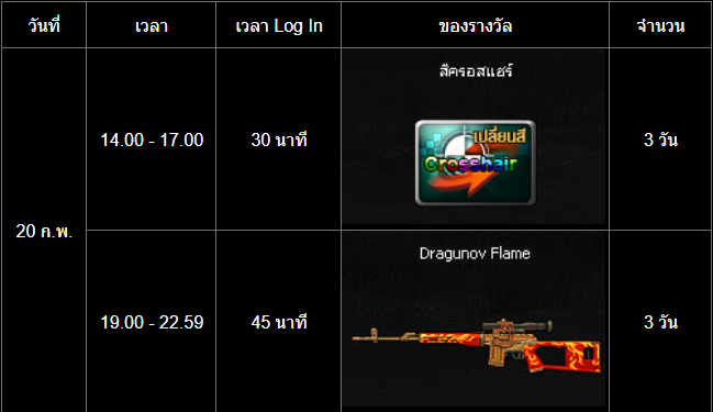 กิจกรรม สะสมเวลาล็อคอินสุดสัปดาห์ต้อนรับตรุษจีน ระยะเวลากิจกรรม : 20 - 22 กุมภาพันธ์ 2569 เพียงเข้าเกมและสะสมเวลาออนไลน์ให้ครบตามที่กำหนดเวลาในช่วง "ระยะเวลากิจกรรม" เพื่อรับรางวัลดังต่อไปนี้