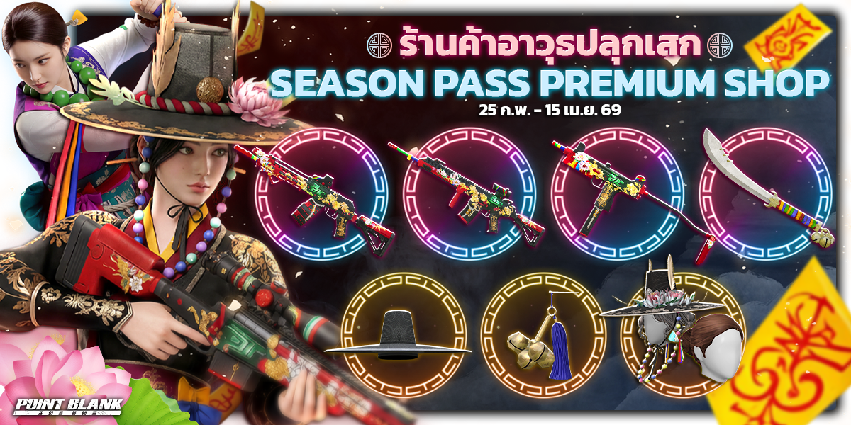 ไอเทมราคาพิเศษในร้านค้าพรีเมียม สำหรับผู้ใช้ Premium Season Pass เท่านั้น!!! เงื่อนไข 1. ผู้เล่นที่ซื้อ Premium Pass และมีเลเวลถึงที่กำหนดจะสามารถเข้า Season Pass Premium Shop เพื่อซื้อไอเทมในราคาพิเศษได้ 2. ผู้เล่นจำเป็นต้องสะสม Season EXP เพื่อเลื่อนระดับเลเวลของ Season Pass ให้ถึงเกณฑ์ที่กำหนดเพื่อปลดล็อกการซื้อสินค้าพิเศษแต่ละประเภท (เมื่อเลเวล Season Pass (ระดับ Premium) ถึงที่กำหนดแล้ว ระบบจะปลดล็อกให้ผู้เล่นสามารถซื้อไอเทมได้) (หากกรณีเมื่อเลื่อนระดับเลเวล Season Pass แล้ว แต่ระบบไม่ปลดล็อกของรางวัลให้ เบื้องต้นทางทีมงานแนะนำให้ผู้เล่นทำการล็อคอินและเข้าใหม่อีกครั้ง) เข้าสู่ Premium Shop หมวด Season Pass เมื่อผู้เล่นเข้าสู่หน้าต่าง Premium Webshop > หมวด Season Pass ผู้เล่นจะพบรายการไอเทมดังรูปตัวอย่างด้านล่าง สำหรับผู้เล่นที่ซื้อ Premium Season Pass