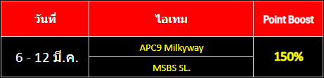ตารางโบนัส EXP & Point ประจำเดือนมีนาคม 2569