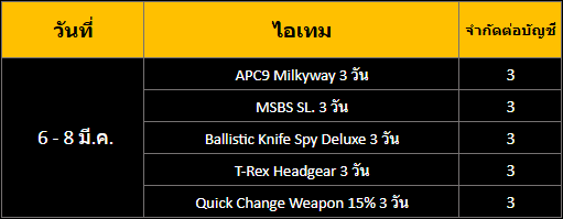 พร้อมไอเทมอาวุธพิเศษเหล่านี้ เป็นระยะเวลา 7 วันทันทีหลังสมัครบัญชี
